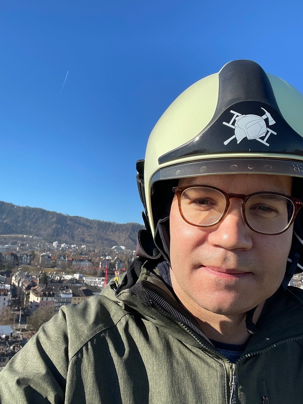 Ich lerne nun die Aufgaben und Menschen bei Schutz & Rettung sowie die verschiedenen Standorte kennen, habe eine erste Herausforderung gemeistert, indem ich die lange Stange der Feuerwehr hinunter in die Fahrzeughalle gerutscht bin und das Vorrecht hatte, in einem Hubretter auf über 40 Meter Höhe hochgefahren zu werden, wo ich einen wunderbaren Rundumblick auf die Stadt geniessen durfte. Und auch die Notfallseelsorge mit ihren Abläufen, Strukturen und Aufgaben werden mir mit jedem Tag etwas vertrauter.